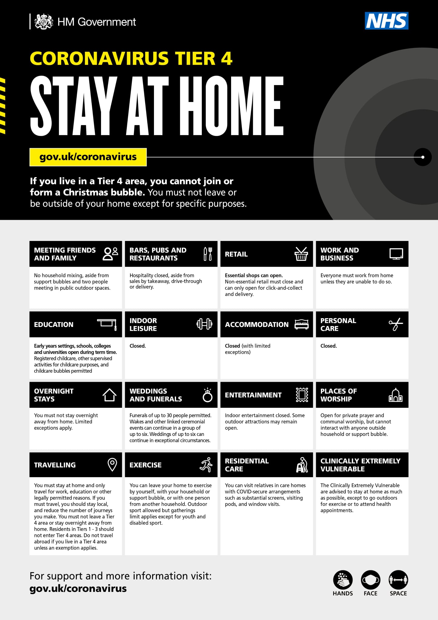 Details about what this means for you and your family can be found at https://www.gov.uk/guidance/tier-4-stay-at-home